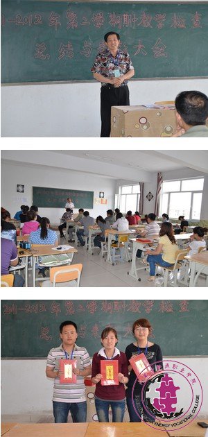 2012年5月11下午4:00我院全院教师在教学楼201教室召开了期中教学检查总结表彰大会。出席的领导:教学院长:闫永平,常务院长:燕林灏,学生处处长:张东升,团支部书记:高玉泉,人事处主任:万庆华,招生办主任:霍栋。本次表彰大会由教务处助理:张铎。 在会议上,张铎老师讲解了教学检查工作的重要性,提出了期中检查的必要性,明确教师间开展教学技能竞技比赛的可行性。会议中由于...